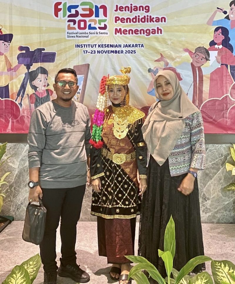 SUNGAIPENUH – Azalia Illona Putri, seorang siswi SMA Negeri Titian Teras–HAS, berhasil mewakili Provinsi Jambi pada tingkat nasional dalam ajang Festival Lomba Seni dan Sastra Siswa Nasional (FLS2N) tahun 2025 untuk cabang baca puisi. Dan pada pembukaan FLS3N Tingkat Nasional kali ini Azalia juga menjadi utusan Provinsi Jambi sebagai peserta defile dengan membawakan busana adat Kerinci.