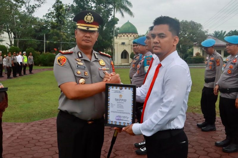 “Penghargaan ini diharapkan dapat menumbuhkan rasa bangga, menjadi teladan, serta memotivasi seluruh personel untuk terus meningkatkan kinerja dalam mewujudkan kerja berkolaborasi, solidaritas, dan gotong royong untuk mengatasi tantangan serta mencapai tujuan bersama “Bersama Kita Bisa ,” kata AKBP Wendi .