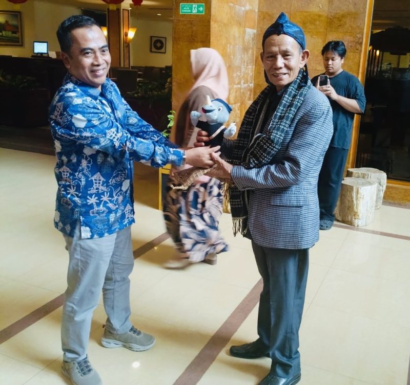 Setibanya di lokasi Peringatan Hari Pers Nasional di Provinsi Banten, Ketua PWI Provinsi Jambi disambut pengalungan Syal Batik dan Maskot HPN Boneka Badak Bercula Satu dengan tema Pers Sehat, Ekonomi Berdaulat, Bangsa Kuat.