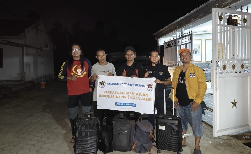 KOTAJAMBI – Usai dilakukan pelepasan secara simbolis oleh Ketua Persatuan Wartawan Indonesia (PWI) Provinsi Jambi H Ridwan Agus Dpt, kali ini PWI Kota Jambi turut mengutus delegasi Kongres PWI tahun 2025 di BPPTIK Komdigi, Cikarang, Kabupaten Bekasi, pada Kamis malam (28/8/205).