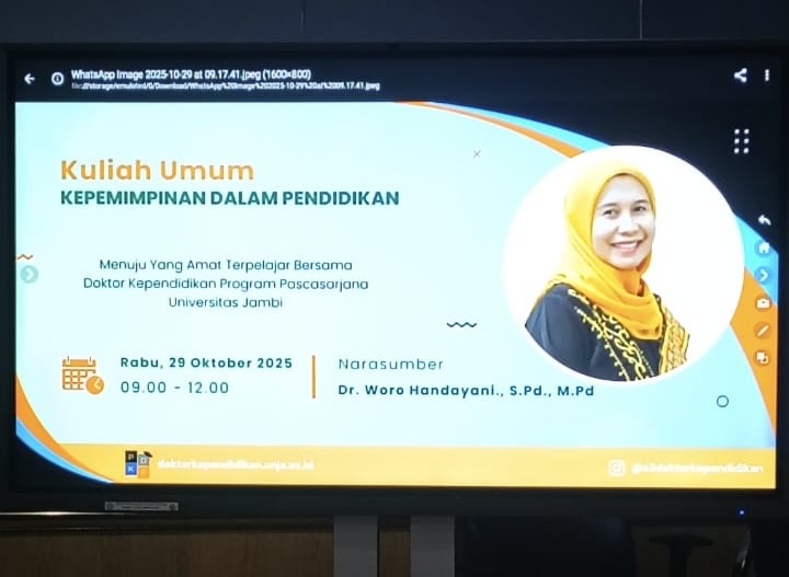 JAMBI – Kepemimpinan sejati bukan tentang kekuasaan, melainkan tentang pengaruh yang menginspirasi perubahan. Pesan inilah yang mengemuka dalam Kuliah Umum bertajuk “Kepemimpinan Dalam Pendidikan Menuju yang Amat Terpelajar” yang diselenggarakan oleh Program Pascasarjana Universitas Jambi (UNJA) pada Rabu, 29 Oktober 2025, di Aula Lantai 4 Graha Kemas Muhammad Soleh, Telanaipura, Kota Jambi.