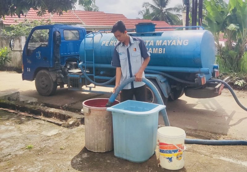 KOTAJAMBI – Perumdam Tirta Mayang Kota Jambi terus menjaga komitmennya dalam memberikan pelayanan kepada pelanggan dengan menyalurkan bantuan air bersih gratis melalui mobil tangki bagi wilayah terdampak pengurangan debit dan penyesuaian jam pengaliran. Kondisi ini terjadi sehubungan dengan pekerjaan perbaikan unit clariflocculator pada Instalasi Pengolahan Air (IPA) Broni 1 yang dijadwalkan berlangsung selama 8 (delapan) hari, mulai 25 April hingga 2 Mei 2026.