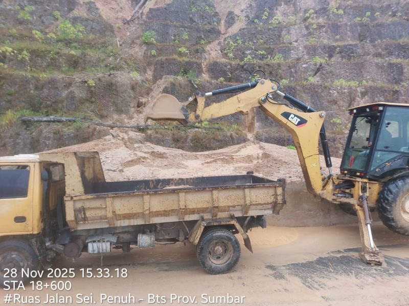 Kepala BPJN Jambi Dr Dedy Hariadi, S.T, M.T, menyampaikan bahwa longsor yang terjadi pada pada 27 November telah kita lakukan penanganan dengan menggunakan alat berat meskipun sempat terjadi kemacetan panjang namun pada tanggal 28 November longsor kembali terjadi di titik yang berbeda pada ruas jalan tsb STA 15.
