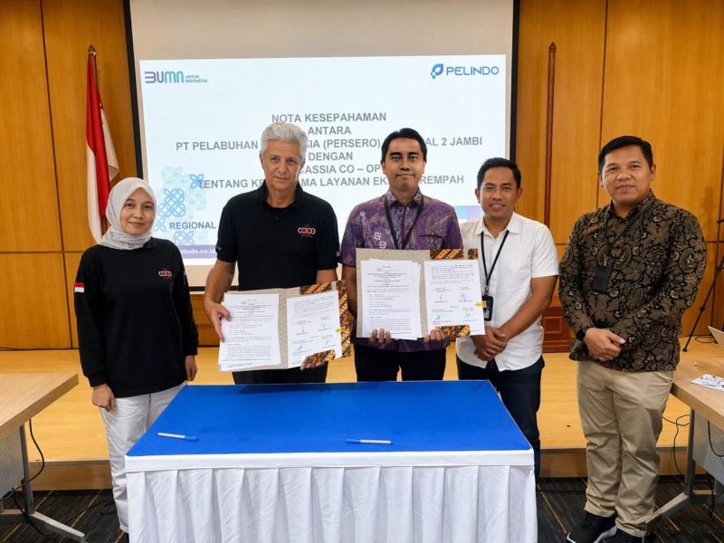 Penandatanganan MoU dan Berita Acara Kesepakatan ini turut dihadiri jajaran manajemen Pelindo Regional 2 Jambi dan IPC Terminal Peti Kemas Area Jambi, serta Founder dan Direktur PT Cassia Co-Op.