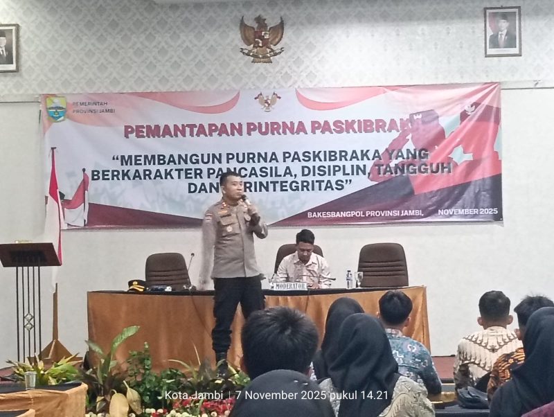 Jambi — Polri melalui Ditbinmas Polda Jambi terus memperluas model pembinaan masyarakat berbasis kolaboratif. Terbaru, Pemprov Jambi bersama Badan Kesatuan Bangsa dan Politik (Kesbangpol) menggelar penambahan dan pembekalan wawasan kebangsaan bagi Purna Paskibraka Provinsi Jambi Tahun Anggaran 2025, yang dilaksanakan pada Jumat (07/11/2025) di Shang Ratu Hotel, Jambi.